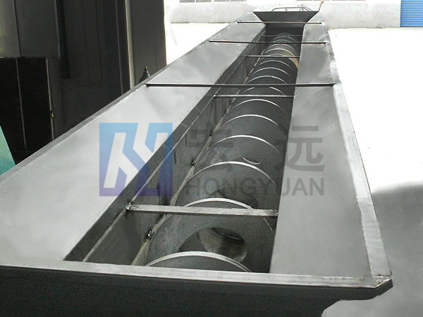 1、螺旋輸送機的結構形式為精密鑄造無軸螺旋,能保證物料輸送流暢,無堵塞。